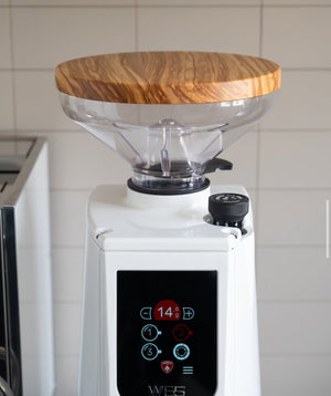 Aggiorna il tuo macinacaffè con un'elegante copertura per macinacaffè di Wiedemann Prodotto. Realizzato a mano in legno massello e progettato per adattarsi Eureka Atom Il contenitore da 300 g è perfetto, sia dal punto di vista funzionale che estetico.