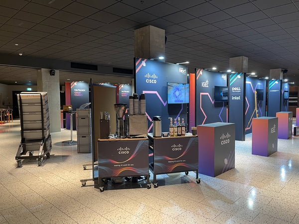 Di solito arriviamo il giorno prima dell'evento per installare il carrello del caffè e l'attrezzatura con una prova per assicurarci che tutto funzioni correttamente in vista del giorno dell'evento. Solitamente richiede circa 1,5-2 ore.
