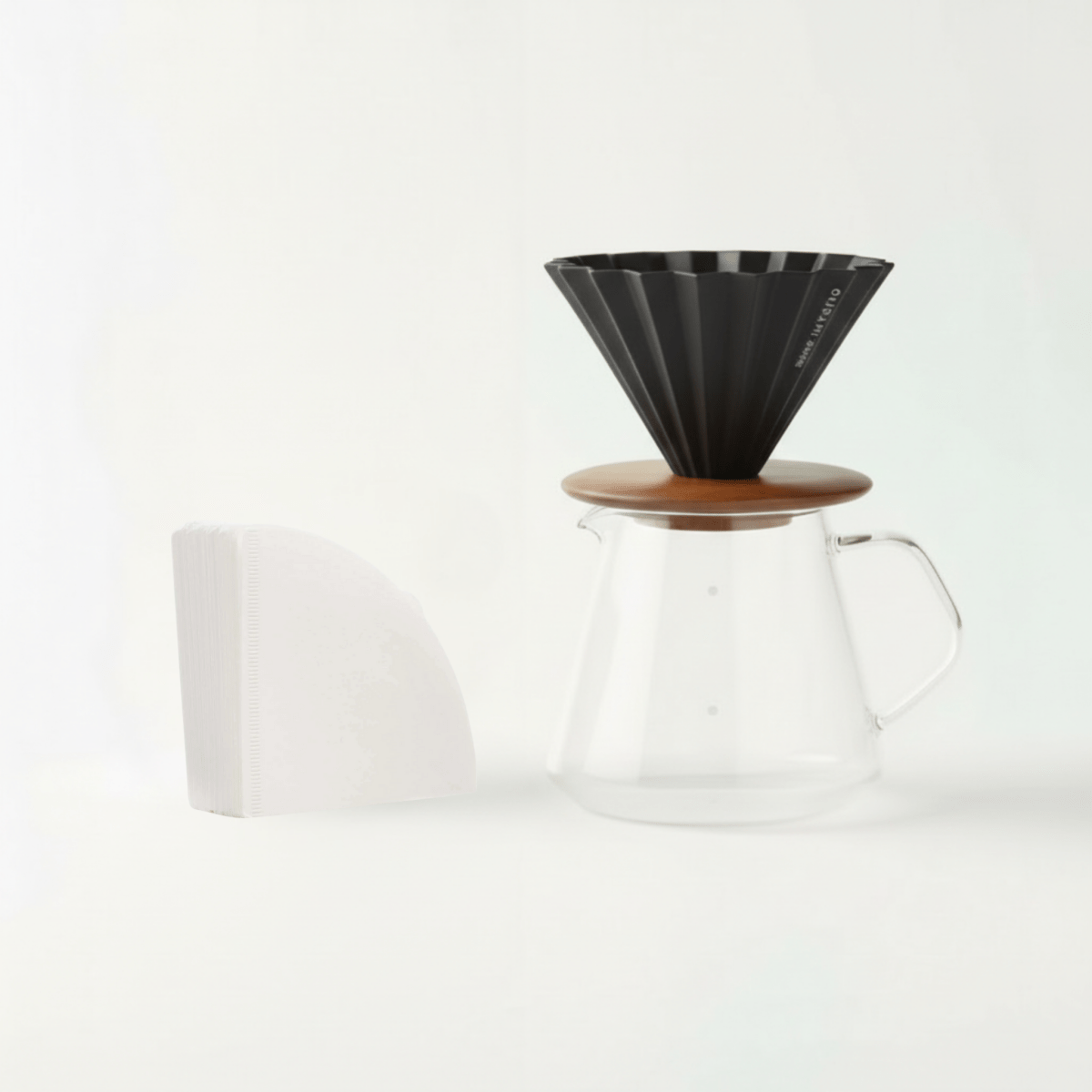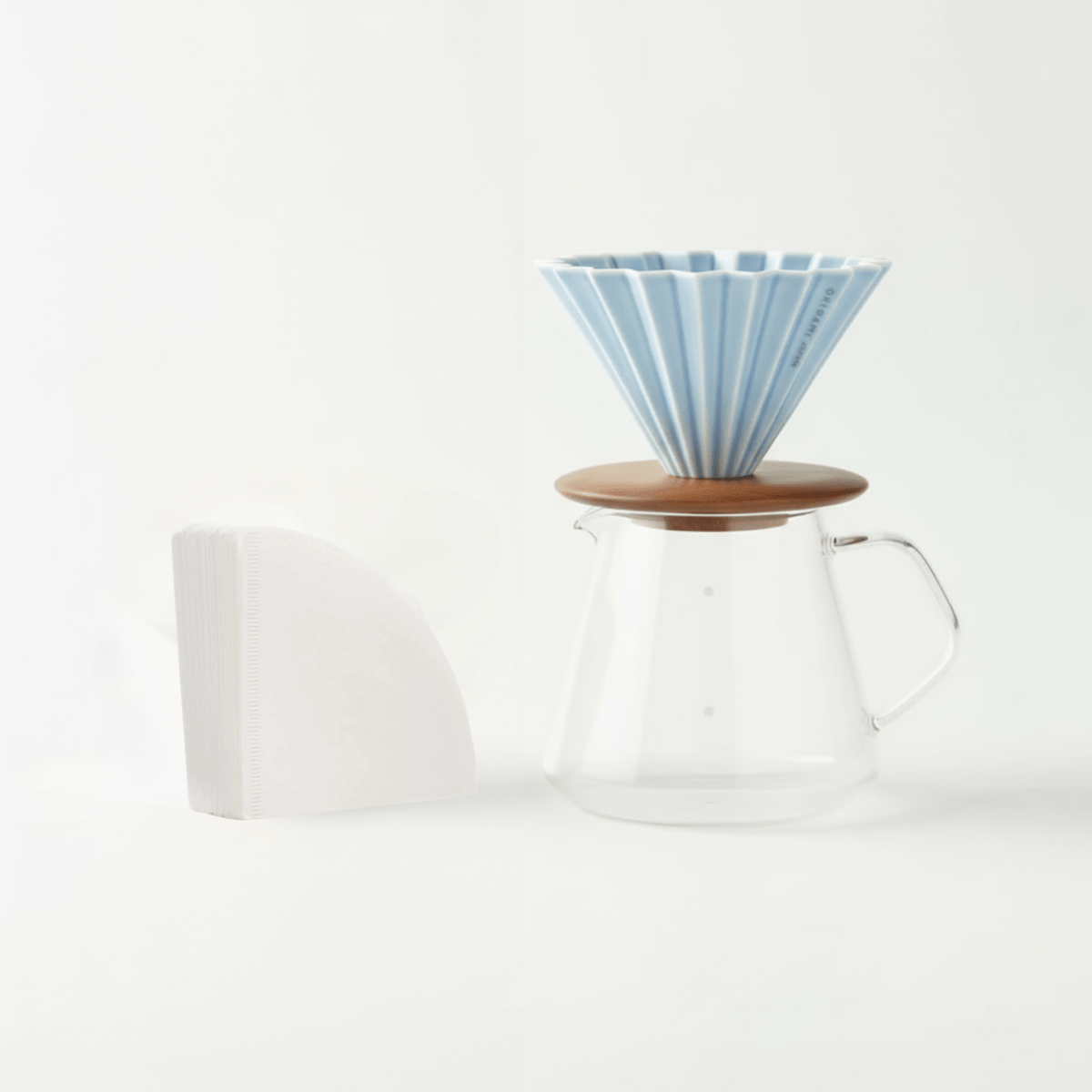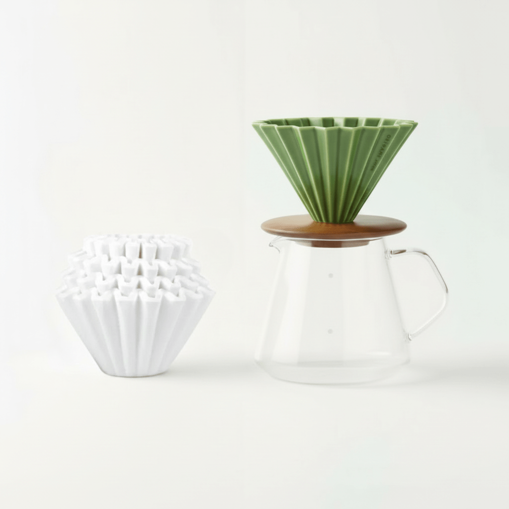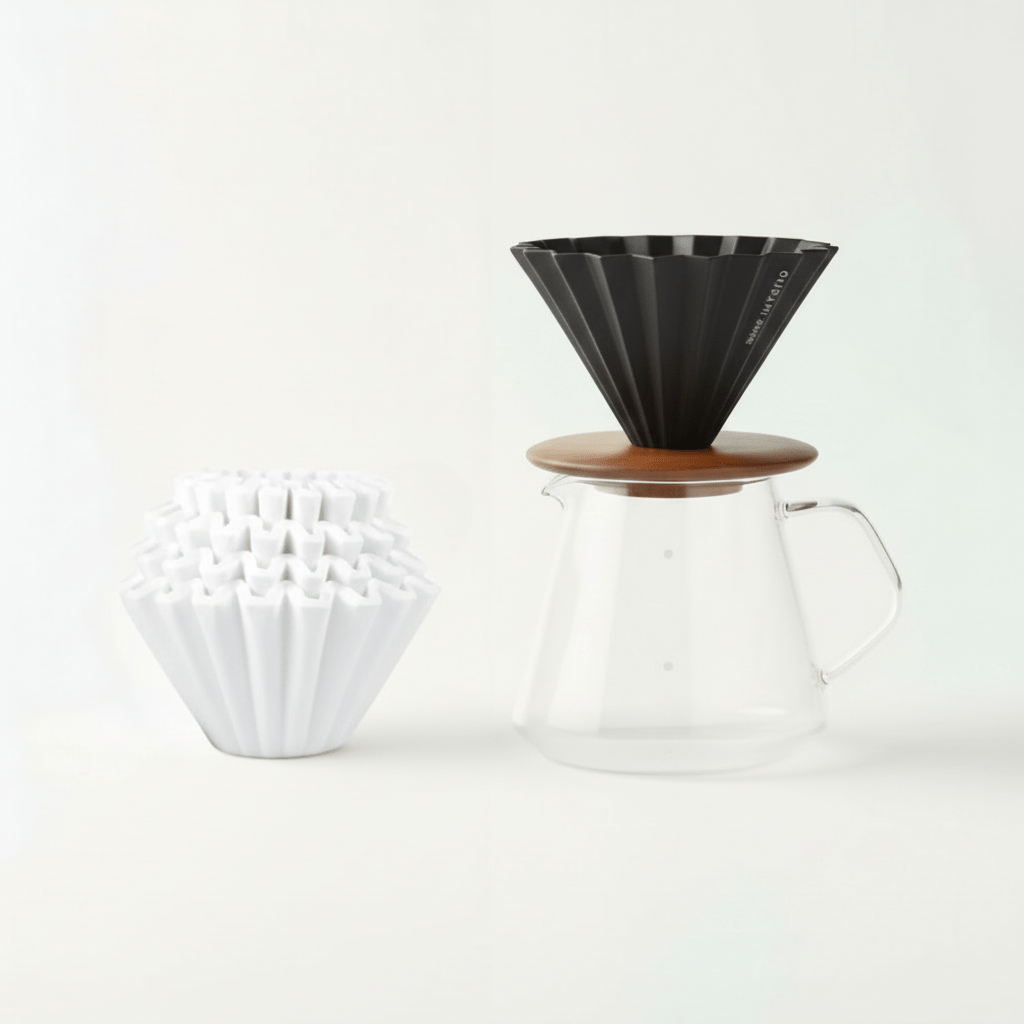 Scopri l'arte giapponese del pour over con questo set completo di Origami. Tutto ciò di cui hai bisogno per preparare un caffè eccezionale con precisione ed eleganza – dal dripper alla caraffa e ai filtri.