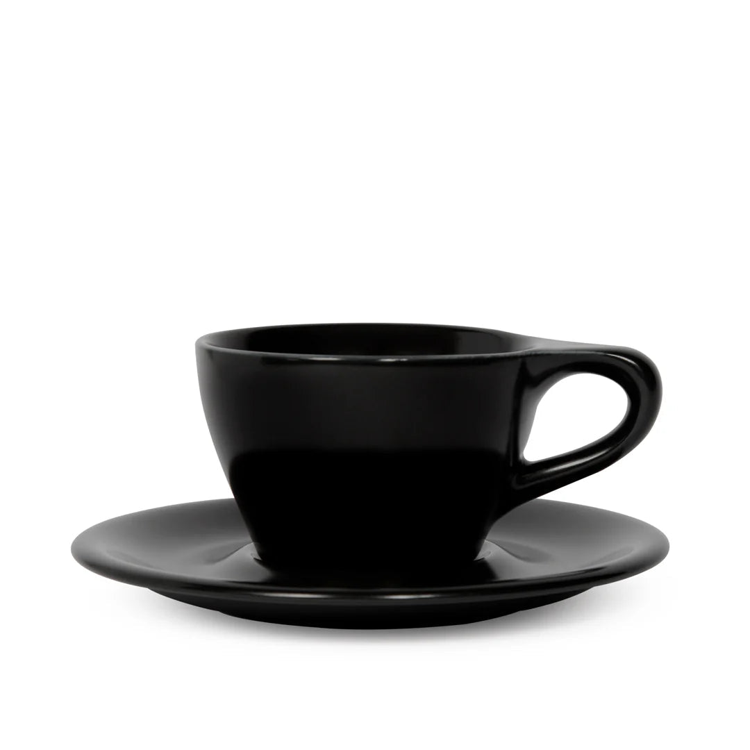 Una tazza da cappuccino approvata dai baristi in porcellana opaca nera. Progettata insieme a baristi premiati per un flusso di latte ottimale, perfetta latte art e una sensazione professionale in ogni tazza.