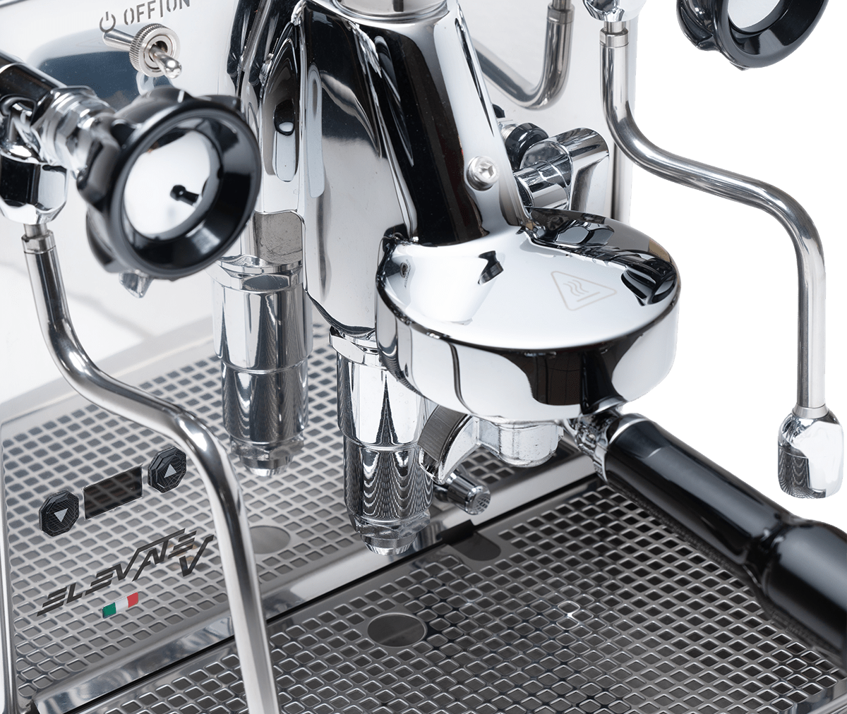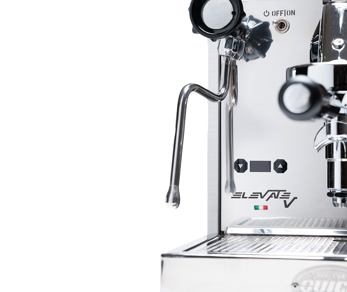 Elevate V è dotata delle valvole esclusive e ergonomiche di Quick Mill e di bacchette anti-scottatura — perfette per la schiumatura del latte e una gestione più sicura.