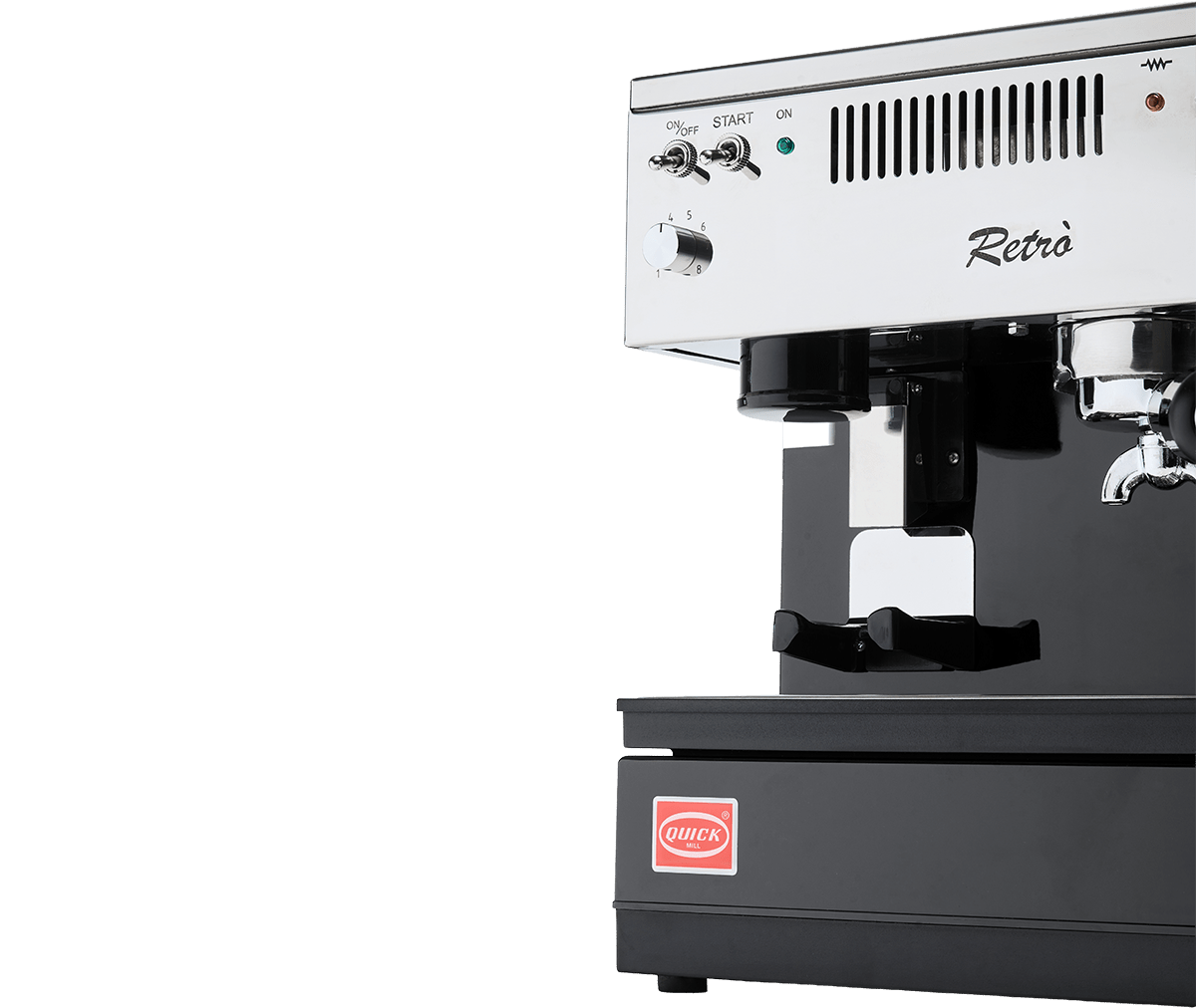 Quick Mill Retrò combina un design vintage con funzionalità moderna in una soluzione compatta tutto-in-uno per il barista casalingo. Con macina per espresso integrata, tecnologia thermoblock rapida e un pratico serbatoio laterale, Retrò offre stile e qualità in ogni shot. La macina integrata con dischi piani da 43 mm macina il caffè fresco direttamente prima dell’estrazione, mentre il thermoblock garantisce un riscaldamento rapido e una temperatura stabile. Per chi cerca semplicità, carattere e affidabilità quotidiana, Retrò è una stazione espresso perfetta che valorizza la cucina con il suo unico stile retrò.