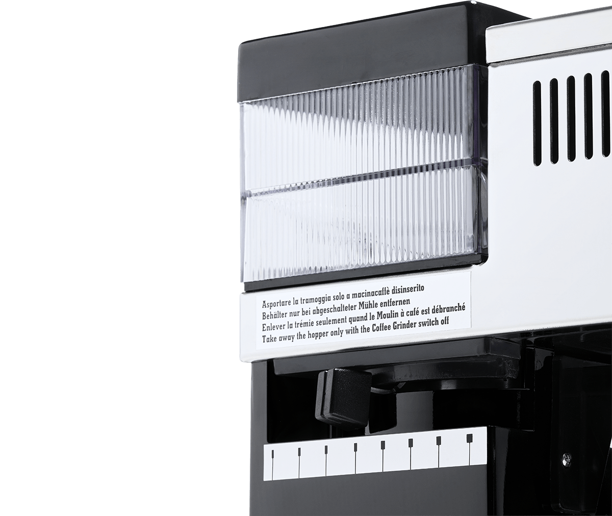 Macina: Macina integrata con dischi piani da 43 mm; regolazione graduale della macinatura; manopola dosatrice