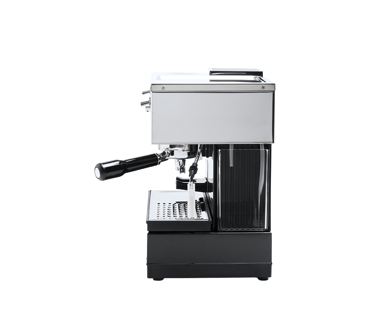 Il serbatoio dell’acqua da 1,8 L è accessibile lateralmente, rendendo semplice il riempimento anche quando la macchina è posizionata sotto un mobile.