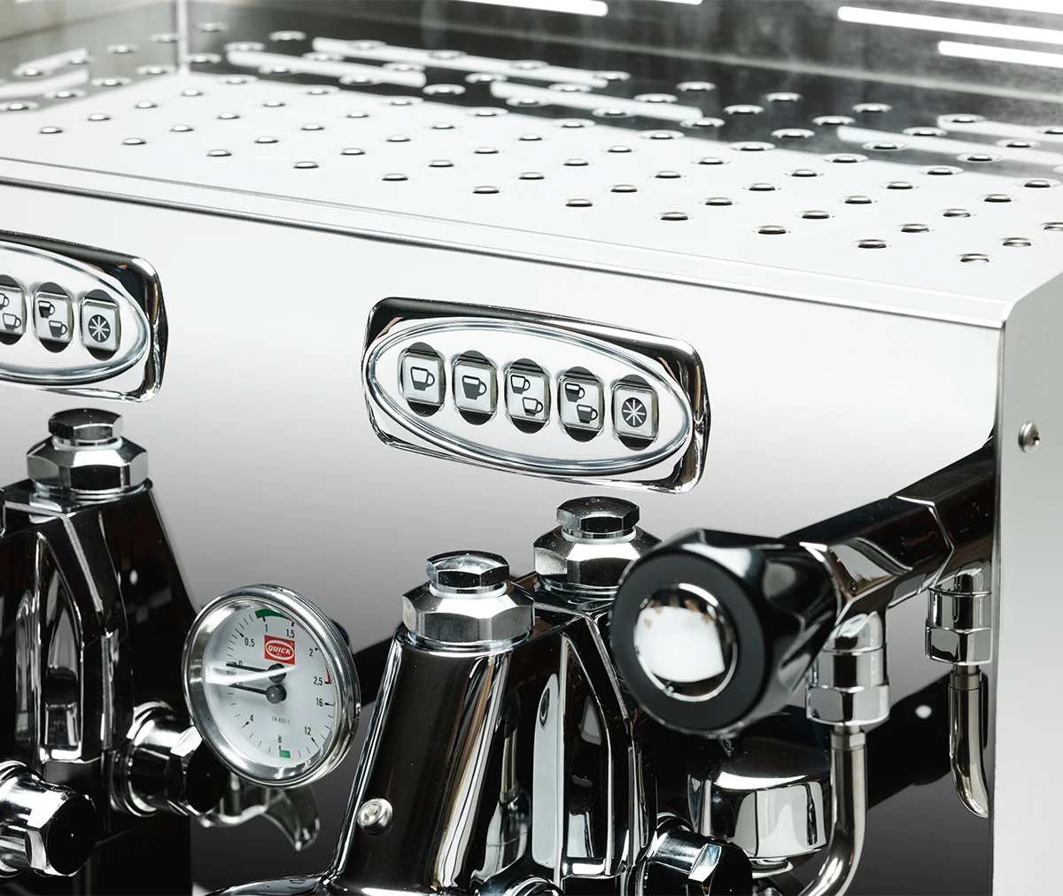 - Grande caldaia in rame con scambiatore di calore (7,5 L) – Temperatura stabile e vapore potente.